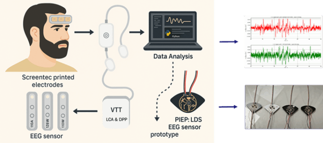 In the EU and Business Finland -funded Sustronics project, Screentec and Plux Biosignals teamed up to develop and evaluate a new generation of printed EEG electrodes designed for both performance and sustainability. The goal? To show that high-quality biopotential monitoring can go hand in hand with eco-conscious design.